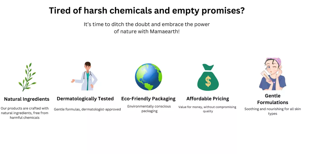 Natural Ingredients: Mamaearth prides itself on using natural, toxin-free ingredients in their products. This means they avoid harsh chemicals, sulfates, parabens, and other potentially harmful substances.